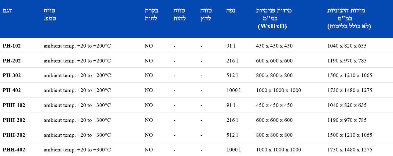 אחידות טמפרטורה, קביעות טמפרטורה, קצב חימום וזמן התאוששות מתבצעים באמינות הגבוהה ביותר.